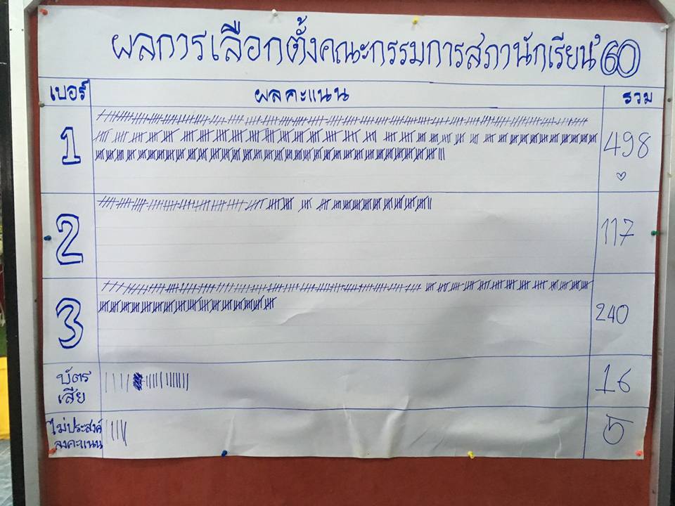 ผลการเลือกตั้งสภานักเรียน โรงเรียนเทศบาล 3 (วิมุกตายนวิทยา) ประจำปี 2560 ได้แก่... เบอร์ 1 พรรคร่วมแรงร่วมใจ พัฒนารั้วขาว-แดง ซึ่งนำทีมโดย เด็กหญิงฟาตีฮะห์ สุหลง ขอเป็นกำลังใจให้ทุกคนในการพัฒนาโรงเรียนของเราต่อไป