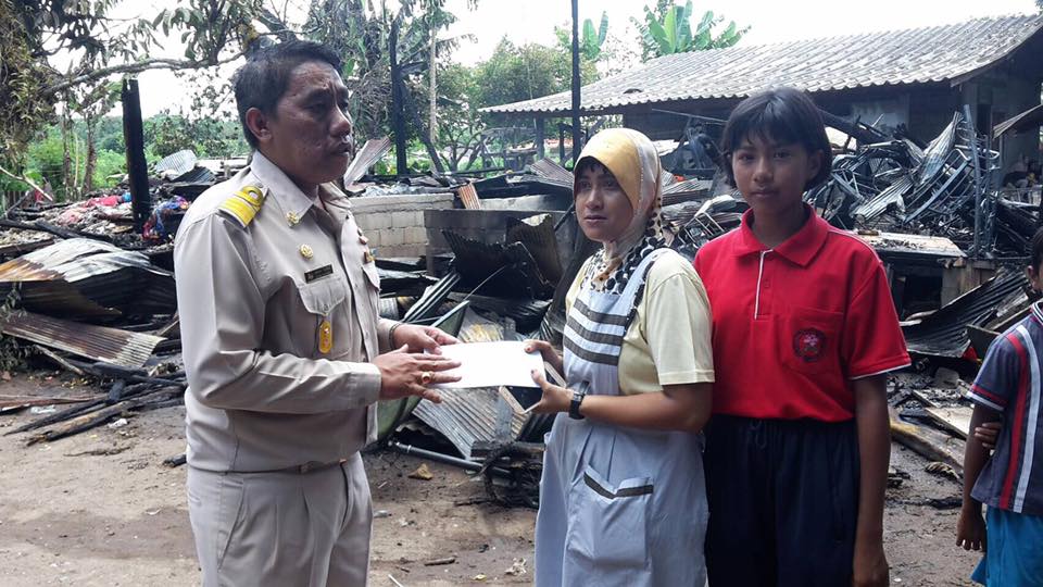 ผู้บริหาร คณะครู และนักเรียน ร่วมกันบริจาคเงินและเครื่องอุปโภคบริโภค เพื่อช่วยเหลือผู้ปกครองและนักเรียนที่ประสบอัคคีภัยเมื่อวันที่ 21 สิงหาคม 2560