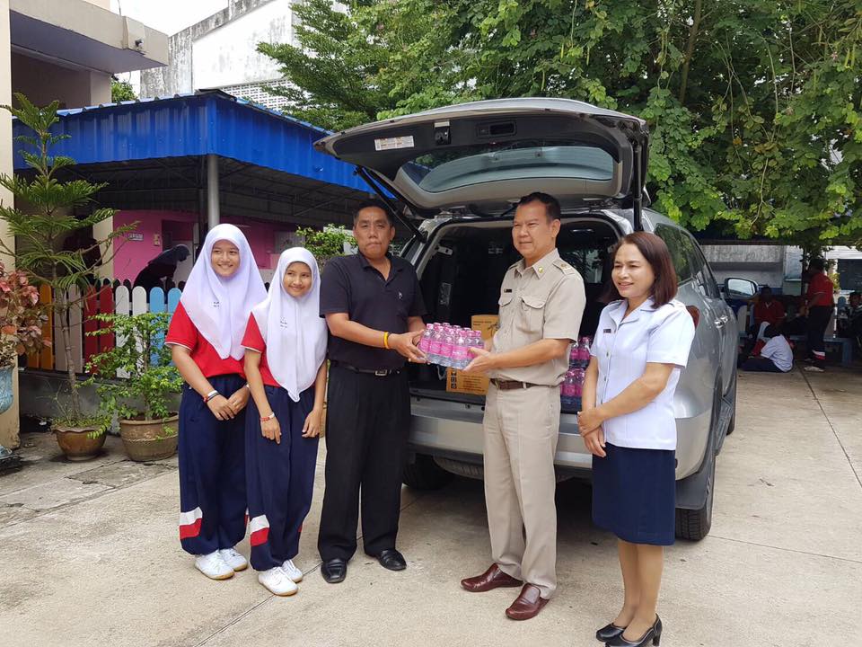 ธนาคารออมสินมอบน้ำดื่มแก่โรงเรียนเทศบาล 3 เพื่อสนับสนุนการเข้าร่วมการแข่งขันกีฬานักเรียน กลุ่มโรงเรียนสังกัดเทศบาลเมืองสุไหงโก-ลก ประจำปี 2560