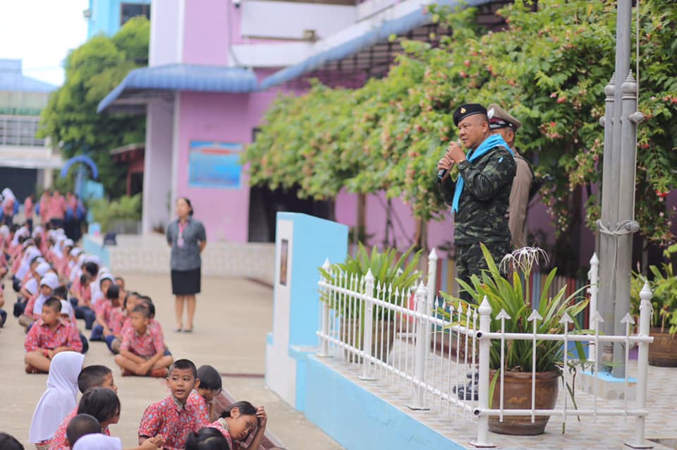 ทหาร ตำรวจ อำเภอ และผู้นำศาสนา พบปะพูดคุยกับนักเรียนเกี่ยวกับปัญหาด้านยาเสพติด เด็กแว้น และพฤติกรรมของเด็กและเยาวชน