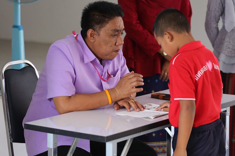 ผู้อำนวยการโรงเรียนเทศบาล 3 (วิมุกตายนวิทยา) นายยุทธนา วังเพ็ชร์ ได้ทดสอบการอ่านภาษาไทย ของนักเรียนชั้นอนุบาล 3 และอนุบาล 2 ด้วยตนเอง