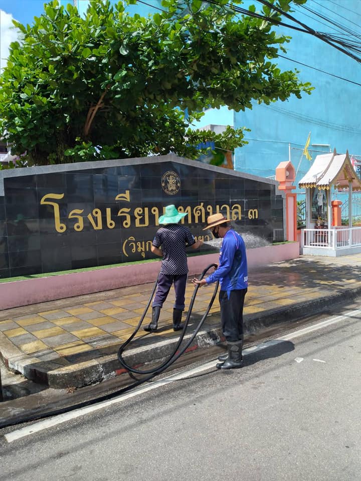 ขอขอบคุณเจ้าหน้าที่จากกองสาธารณสุขและสิ่งแวดล้อมที่มาฉีดพ่นน้ำยาฆ่าเชื้อภายในโรงเรียนเทศบาล 3 (วิมุกตายนวิทยา)