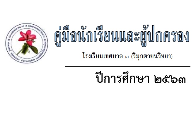 คู่มือนักเรียนและผู้ปกครอง ปีการศึกษา 2563 ของโรงเรียนเทศบาล 3 (วิมุกตายนวิทยา)จัดทำขึ้นโดยมีวัตถุประสงค์เพื่อชี้แจงให้นักเรียนและผู้ปกครองได้รับทราบถึงแนวการปฏิบัติที่ถูกต้องตามระเบียบของโรงเรียนทั้งในด้านวิชาการและการปกครอง ซึ่งข้อมูลต่างๆ ในคู่มือเล่มนี้ ล้วนแต่เป็นประโยชน์และเกี่ยวข้องกับนักเรียนและผู้ปกครองของโรงเรียนทั้งสิ้น ดังนั้นเพื่อประโยชน์สูงสุดขอให้นักเรียนและผู้ปกครองได้ศึกษาคู่มือเล่มนี้อย่างละเอียด เพื่อให้เกิดความเข้าใจตรงกันระหว่างโรงเรียนกับนักเรียนและผู้ปกครอง