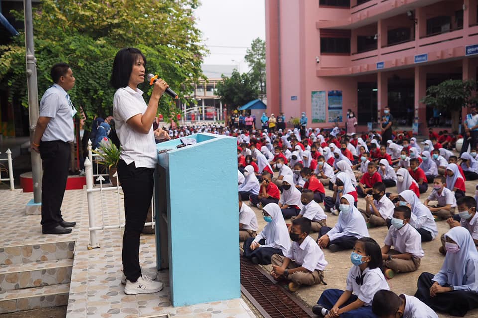 นางศิวัชญา ปลาลารัตน์ ผอ.ส่วนส่งเสริมการศึกษาฯ สำนักการศึกษา เทศบาลเมืองสุไหงโก-ลก เข้าเยี่ยมโรงเรียนและพบปะครูและนักเรียน หลังจากเสร็จสิ้นกิจกรรมหน้าเสาธง