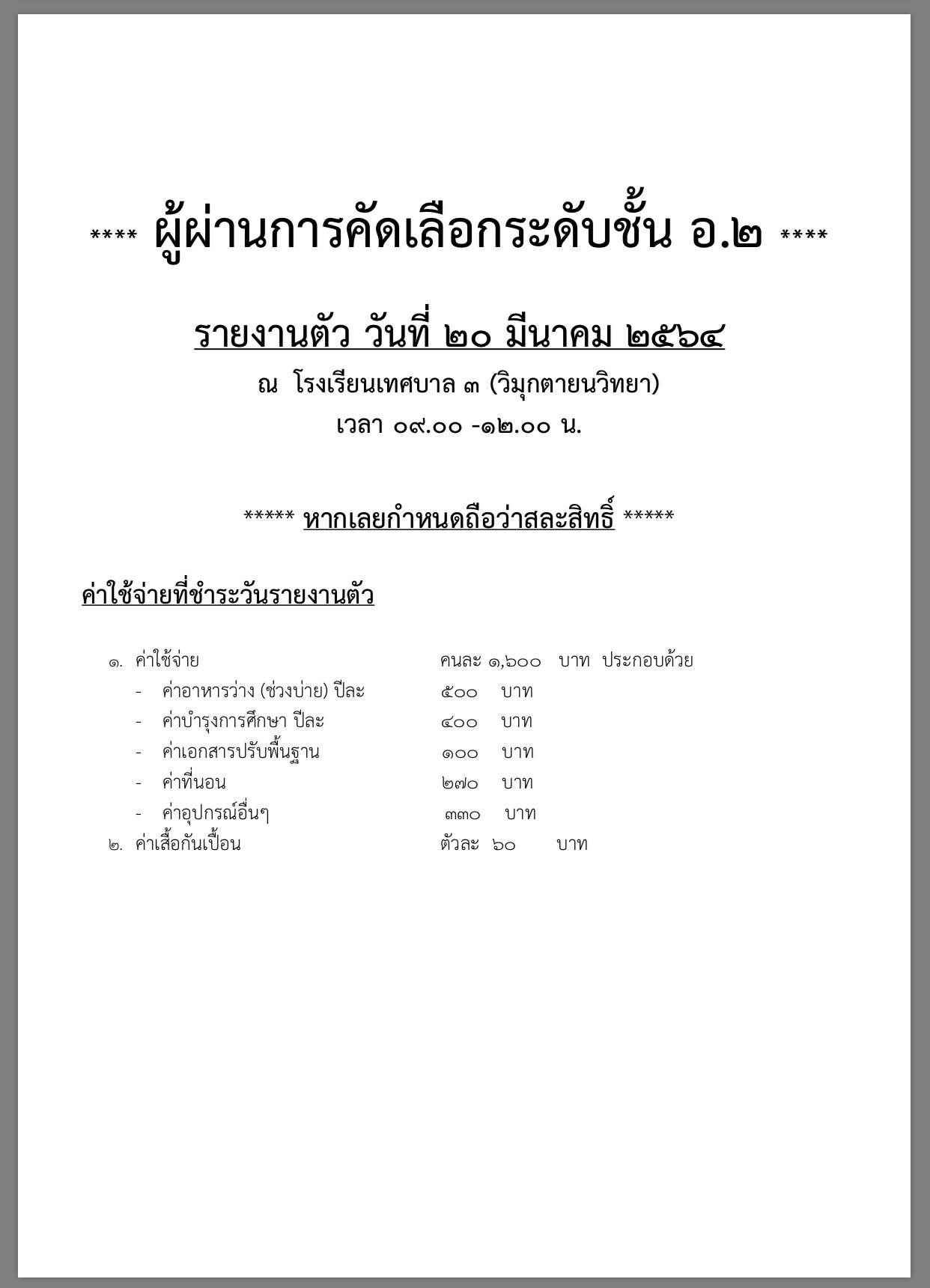 ผลการสอบคัดเลือกนักเรียนชั้นอนุบาลปีที่ 2 ปีการศึกษา 2564