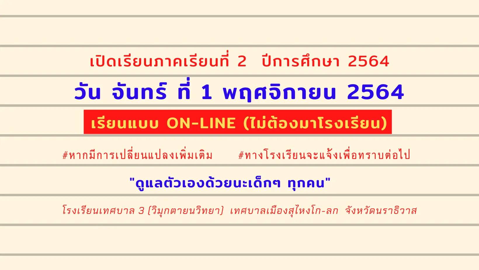 เปิดภาคเรียนที่ 2 ปีการศึกษา 2564 (เรียนแบบ On-line)