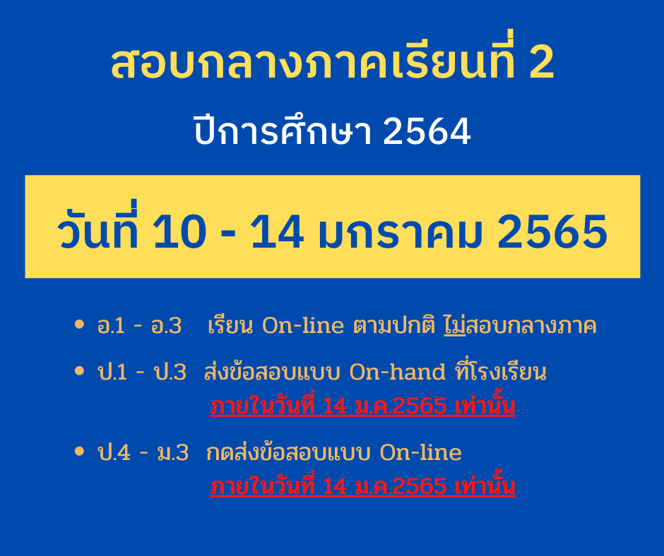 การสอบวัดผล กลางภาคเรียนที่ 2 ปีการศึกษา 2564